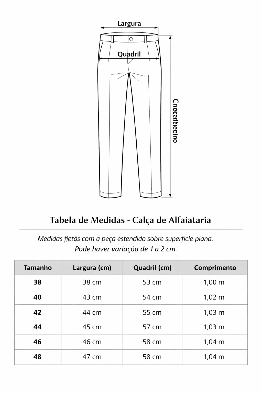 - Tecido Principal: Sarja Acentenada