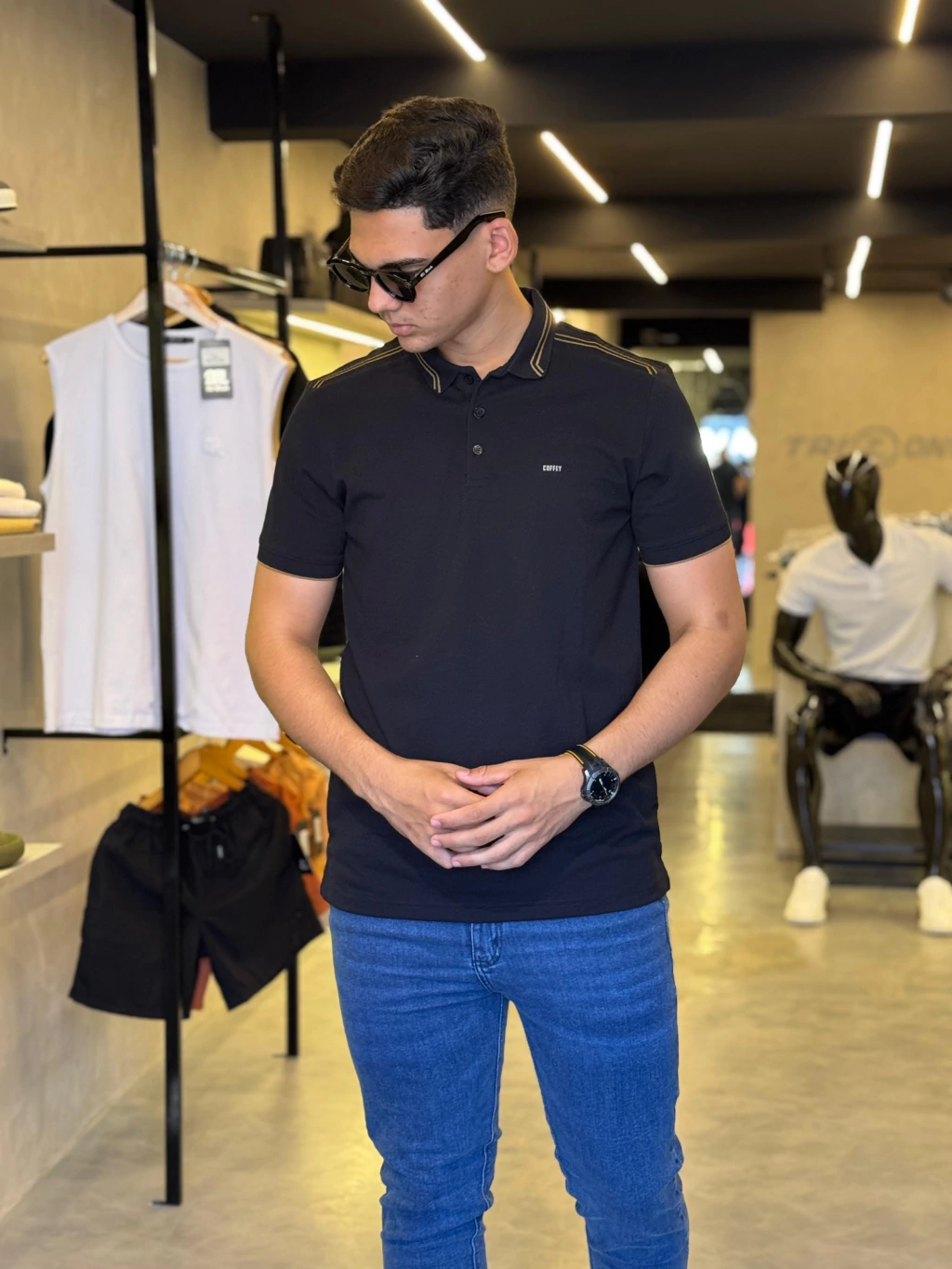 Modelo está usando tamanho M. Medidas do modelo: 1,80cm e 85kg.